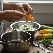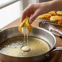Przygotowanie kwiatów cukinii wymaga niezwykłej delikatności. Weź każdy kwiat pojedynczo i ostrożnie rozchyl jego płatki. Sprawdź, czy w środku nie ma żadnych owadów. Następnie, używając palców lub małej pęsety, delikatnie usuń znajdujący się wewnątrz pręcik (słupek) - może być gorzki w smaku. Staraj się nie rozerwać delikatnych płatków. Nie myj kwiatów pod bieżącą wodą, ponieważ są zbyt kruche. Zamiast tego, przetrzyj je delikatnie wilgotnym ręcznikiem papierowym. Odłóż na suchy ręcznik papierowy do całkowitego wyschnięcia.