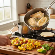 Najlepiej jest zjeść wszystko od razu. Jeśli jednak zostaną Ci składniki, przechowuj je osobno w lodówce w szczelnych pojemnikach. Salsę można przechowywać do 2 dni. Usmażoną rybę można odgrzać w piekarniku nagrzanym do 200°C lub w frytkownicy beztłuszczowej przez kilka minut, aby odzyskała chrupkość - unikać mikrofalówki, która sprawi, że panierka stanie się rozmoczona.