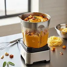 Gdy dynia będzie już upieczona i lekko ostygnięta, przełóż ją do kielicha blendera stojącego lub wysokiego naczynia (jeśli używasz blendera ręcznego). Zmiksuj dynię na idealnie gładkie, aksamitne purée. Jeśli masa jest bardzo gęsta i blender ma problemy z pracą, możesz dodać 2-3 łyżki gorącej wody lub bulionu warzywnego, aby ułatwić miksowanie.