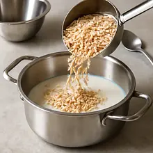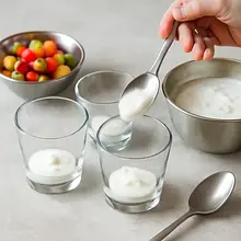 Przygotuj kompot z jagód: włóż 300 g mieszanki jagód do średniej wielkości rondelka, dodaj 60 ml wody i 10 ml soku z cytryny. Jeśli chcesz słodszy kompot, dodaj 20 g miodu (opcjonalnie). Postaw na średnim ogniu i doprowadź do lekkiego wrzenia, następnie zmniejsz ogień i gotuj 6–8 minut, mieszając co 1–2 minuty. Gdy owoce puściły sok i część się rozpadła, rozgnieć kilka owoców łyżką, ale pozostaw część całych jagód dla tekstury. Kompot powinien lekko zgęstnieć — po łyżce syrop powinien oblepić tylną część łyżki.
