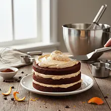 Pozostałą częścią kremu posmaruj cienko boki oraz wierzch tortu, wyrównując powierzchnię za pomocą długiej szpatułki cukierniczej lub noża. Wstaw złożony tort do lodówki na minimum 8 godzin, a najlepiej na całą noc. To kluczowy krok, podczas którego twarde blaty wchłoną wilgoć z kremu, zmiękną i połączą się w spójną całość.