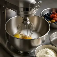 Schłodź miskę i trzepaczkę miksera w zamrażarce przez 10 minut (opcjonalnie) – ułatwi to ubijanie. Wlej schłodzoną śmietankę (600 ml) do dużej, zimnej misy, dodaj cukier puder (100 g) i ewentualnie cukier waniliowy (8 g). Ubijaj na średnio-wysokich obrotach miksera przez 3-5 minut do momentu, gdy śmietana osiągnie miękkie-półtwarde szczyty (po uniesieniu trzepaczki tworzą się kształty, ale wierzchołki są jeszcze lekko miękkie).