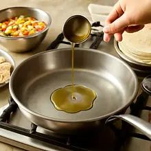 Rozgrzej szeroką patelnię (najlepiej 26–28 cm) na średnio-wysokim ogniu. Dodaj łyżkę oleju (15 g) i poczekaj 30–45 sekund, aż olej będzie lekko migotać. Rozłóż paski kurczaka na patelni w jednej warstwie, nie przepełniaj patelni — smaż w dwóch turach, jeśli potrzeba. Smaż 2–3 minuty z jednej strony, aż brzegi zbieleją i pojawi się złocisty kolor, następnie obróć i smaż kolejne 2–3 minuty. Mięso jest gotowe gdy jego wnętrze jest białe i temperatura wewnętrzna wynosi co najmniej 74°C lub gdy przekrojenie pokaże brak różowego środka.