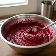 Za pomocą łyżki bardzo dokładnie wymieszaj wszystkie składniki, aż do uzyskania jednolitej masy o intensywnym, rubinowym kolorze. Spróbuj sałatkę i w razie potrzeby dopraw do smaku – możesz dodać więcej cukru dla słodyczy, soku z cytryny dla kwasowości, soli dla podkreślenia smaku lub chrzanu dla ostrości. Smak powinien być idealnie zbalansowany: słodko-kwaśno-ostry.