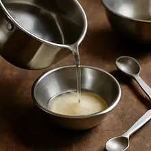 Przygotuj żelatynę: wsyp 8 g żelatyny do małej miseczki, dodaj 40 ml zimnej wody i pozostaw na 5–8 minut do napęcznienia (powstanie galaretowata masa). Po napęcznieniu podgrzej żelatynę nad kąpielą wodną lub w bardzo krótkich interwałach w mikrofalówce, aż stanie się płynna i przejrzysta (nie dopuszczaj do wrzenia). Ostudź przez 1–2 minuty — powinna być letnia.
