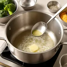 W dużym garnku (pojemność min. 3 l) rozgrzej na średnim ogniu masło z dodatkiem oleju rzepakowego (najpierw olej, potem dodaj masło, aby nie spalić masła). Gdy masło się roztopi i zacznie lekko pienić, dodaj pokrojoną cebulę i marchew. Smaż 5-7 minut, mieszając drewnianą łyżką, aż cebula stanie się szklista i miękka, a marchew lekko zmięknie — nie dopuszczaj do zbrązowienia (zbyt mocne zrumienienie zmieni smak). Na końcu dodaj czosnek i smaż dodatkowe 30 sekund, aż uwolni aromat.