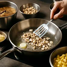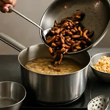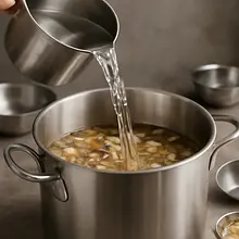 Odważ suszone borowiki (40 g). Przełóż je do miski i opłucz pod zimną wodą, aby usunąć powierzchniowy kurz. Zalej borowiki 500 ml przegotowanej, gorącej (nie wrzącej) wody o temperaturze ok. 70°C, tak aby były całkowicie przykryte. Przykryj miskę talerzem i odstaw na 30-40 minut do napęcznienia. Po 15–20 minutach sprawdź — grzyby powinny stać się miękkie i powiększone; jeśli są twarde, odstaw dłużej.