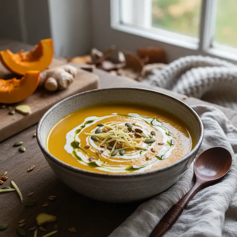 Ten przepis to kwintesencja jesieni zamknięta w misce. Aksamitny krem z pieczonej dyni to danie, które rozgrzewa, syci i zachwyca głębią smaku. Pieczenie dyni zamiast gotowania wydobywa z niej naturalną słodycz i karmelowy posmak, co stanowi idealną bazę dla zupy. Dodatek mleka kokosowego nadaje jej egzotycznej, kremowej nuty i doskonale równoważy intensywność przypraw. Świeży imbir i gałka muszkatołowa wprowadzają pikantne, korzenne akcenty, tworząc wielowymiarową kompozycję smakową. Zupa ma przepiękny, intensywnie pomarańczowy kolor, który już samym wyglądem poprawia nastrój w chłodne dni. Idealnie sprawdzi się jako elegancka przystawka na przyjęciu, sycący lunch lub lekka, rozgrzewająca kolacja. Podawaj ją z chrupiącymi grzankami, prażonymi pestkami dyni lub kleksem gęstego jogurtu.