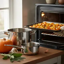 Wstaw blachę z dynią do nagrzanego piekarnika. Piecz przez około 30-40 minut. Dynia jest gotowa, gdy miąższ jest całkowicie miękki (można go łatwo przebić widelcem), a brzegi są lekko przypieczone i skarmelizowane. Czas pieczenia zależy od grubości kawałków i konkretnego piekarnika, więc sprawdzaj dynię po 30 minutach. Po upieczeniu wyjmij blachę z piekarnika i odstaw na bok do lekkiego przestygnięcia.