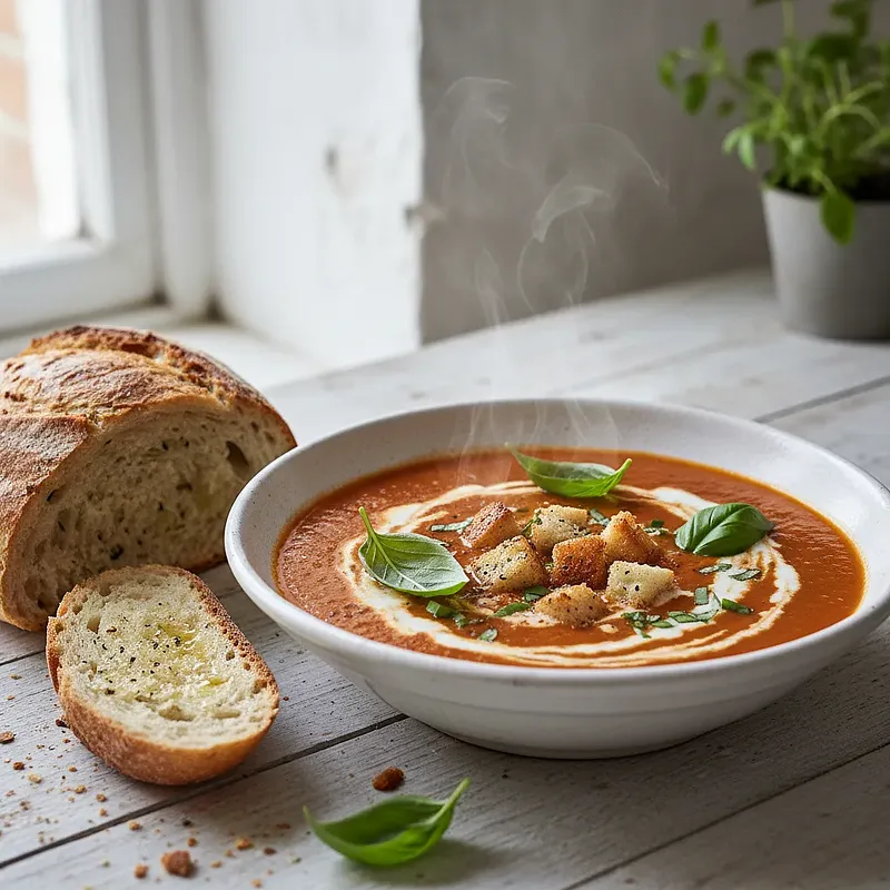 Ten aksamitny krem to kwintesencja smaku dojrzałych w słońcu pomidorów, których głębia zostaje wydobyta poprzez pieczenie. Proces ten karmelizuje naturalne cukry zawarte w warzywach, nadając zupie niezwykłej słodyczy i lekko dymnego aromatu. Dodatek świeżej bazylii tuż przed zmiksowaniem wnosi orzeźwiającą, lekko pieprzną nutę, która idealnie równoważy bogactwo pomidorów. Zupa ma piękną, intensywnie czerwoną barwę i gładką, kremową konsystencję, która otula podniebienie. Idealnie sprawdzi się jako elegancka przystawka na specjalne okazje, takie jak kolacja sylwestrowa, serwowana w małych filiżankach, lub jako sycące danie na chłodniejszy wieczór. Podana z chrupiącymi grzankami, kleksem śmietany lub kilkoma kroplami aromatycznej oliwy, stanowi pełne i satysfakcjonujące doznanie kulinarne.