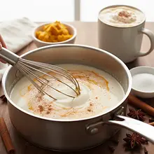 W małym rondelku połącz pozostałe mleko (350 ml) z 4 czubatymi łyżkami przygotowanego puree dyniowego (resztę puree możesz przechować). Dodaj ekstrakt waniliowy. Podgrzewaj na średnim ogniu, ciągle mieszając trzepaczką, aż mleko będzie gorące i zacznie parować. Nie doprowadzaj do wrzenia! Chodzi o to, by składniki się połączyły, a mleko było idealnie gorące do picia.
