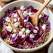 Nagrzej piekarnik do 200°C (góra-dół). Umyj buraki szczoteczką pod bieżącą wodą, usuń ewentualne zgrubienia i przytnij końcówki. Nie obieraj. Każdego buraka zawiń osobno w folię aluminiową lub umieść w naczyniu żaroodpornym przykrytym. Piecz 45-60 minut w zależności od wielkości (średni burak 150g: ok. 45 minut). Sprawdzisz widelcem — burak jest miękki gdy widelec łatwo wchodzi do środka.