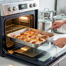 Wstaw blaszkę do nagrzanego piekarnika i piecz 12-18 minut w 200°C, aż krawędzie będą złociste i delikatnie skurczone. Po około 10 minutach otwórz piekarnik i sprawdź jedną blaszkę — jeśli brzegi są już złote, obróć plastry na drugą stronę za pomocą szpatułki i dopiecz 3-5 minut. Czas pieczenia zależy od grubości plastrów i piekarnika.