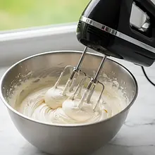 W dużej, schłodzonej misce umieść bardzo zimną śmietankę kremówkę 36%. Ubijaj ją mikserem na najwyższych obrotach, aż stanie się gęsta i sztywna. Uważaj, aby jej nie 'przebić' (zwarzyć), bo powstanie masło. Gotowa bita śmietana powinna trzymać kształt i nie spływać z mieszadeł miksera.