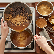 Oto deser, który spełnia wszystkie słodkie marzenia, a do jego przygotowania nie potrzebujesz nawet włączać piekarnika! 'Orzechowy Król' to nasza autorska wariacja na temat kultowego batona Snickers, przekształcona w eleganckie, wielowarstwowe ciasto. Na samym dole znajduje się gęsty, ciągnący się spód nugatowy o mlecznym smaku, który idealnie równoważy słodycz kolejnych warstw. Sercem deseru jest gruba warstwa domowego, płynnego karmelu z chrupiącymi, solonymi orzeszkami ziemnymi – to połączenie słodkiego i słonego smaku, które uzależnia od pierwszego kęsa. Całość wieńczy aksamitna polewa z rozpływającej się w ustach mlecznej czekolady. Ciasto jest niezwykle efektowne wizualnie, a jego przygotowanie, choć wymaga nieco cierpliwości ze względu na chłodzenie, jest prostsze niż myślisz. Idealne na specjalne okazje, imprezy lub jako nagroda po ciężkim dniu.