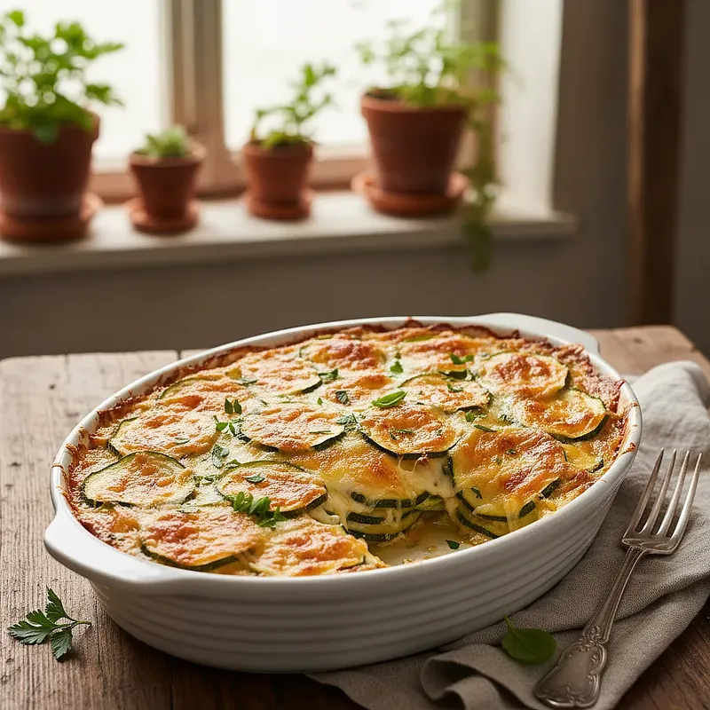 Wstaw naczynie do nagrzanego do 200°C piekarnika. Piecz przez 25-30 minut. Zapiekanka jest gotowa, gdy wierzch jest apetycznie złocisty i chrupiący, a ser bulgocze. Aby sprawdzić, czy cukinia jest miękka, delikatnie wbij w nią widelec lub końcówkę noża – powinien wchodzić bez oporu. Jeśli wierzch rumieni się zbyt szybko, możesz przykryć go luźno folią aluminiową na ostatnie 5-10 minut pieczenia.