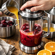 Przygotuj składniki sosu. Jeśli używasz surowego buraka: obierz i pokrój w drobną kostkę (ok. 1 cm). Umieść buraka w małym garnku, zalej 150 ml wody, doprowadź do wrzenia, zmniejsz ogień i gotuj 18-20 minut aż burak będzie miękki (sprawdź widelcem). Jeśli używasz buraka już ugotowanego lub z słoika, pokrój na mniejsze kawałki i przejdź dalej. Wyciśnij sok z 2 pomarańczy (zachowaj skórkę jednej pomarańczy do dekoracji).