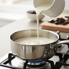 Wlej śmietankę kremówkę do małego rondelka z grubym dnem. Podgrzewaj na małej lub średniej mocy palnika przez około 3-4 minuty. Obserwuj ją uważnie – powinna być bardzo gorąca i zacząć parować, a przy brzegach mogą pojawić się małe bąbelki. Nie doprowadzaj jej do wrzenia, ponieważ może się zwarzyć.