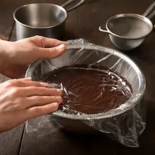 Przykryj miskę folią spożywczą (bezpośrednio dotykając powierzchni masy, aby nie powstała skorupa) i odstaw ganache do wystudzenia w temperaturze pokojowej przez 30 minut, a następnie włóż do lodówki na minimum 30-60 minut, aż masa stężeje na tyle, że będzie można z niej formować kulki (konsystencja podobna do miękkiego plasteliny).