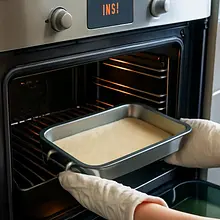 Wstaw formę do nagrzanego piekarnika i piecz 12–15 minut w 170°C, aż brzegi lekko się zarumienią. Po upieczeniu wyjmij i odstaw do wystudzenia na kratce (ok. 20–30 minut).