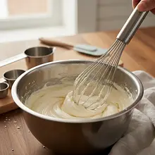 W dużej misie miksera umieść bardzo dobrze schłodzoną śmietankę 36%. Ubijaj ją na wysokich obrotach miksera, aż stanie się gęsta i sztywna, tworząc tzw. 'miękkie wierzchołki'. Uważaj, aby jej nie 'przebić' (zrobi się masło).