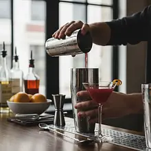 Cosmopolitan, pieszczotliwie nazywany 'Cosmo', to ikona świata koktajli, symbol elegancji i miejskiego szyku. Jego popularność eksplodowała w latach 90. dzięki serialowi 'Seks w wielkim mieście', stając się synonimem nowoczesności i dobrego smaku. To perfekcyjnie zbalansowany drink, w którym cierpkość soku żurawinowego i orzeźwiająca kwasowość świeżej limonki harmonijnie łączą się ze słodyczą likieru pomarańczowego i czystą mocą wódki cytrynowej. Jego hipnotyzujący, różowo-rubinowy kolor prezentuje się zjawiskowo w klasycznym kieliszku do martini, a dekoracja w postaci skręconej skórki pomarańczy uwalnia cytrusowe olejki eteryczne, które pieszczą zmysły jeszcze przed pierwszym łykiem. Jest to koktajl idealny na specjalne okazje, takie jak Sylwester, gdzie jego wyrafinowany charakter podkreśli wyjątkowość chwili.