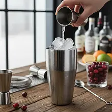Weź przygotowany wcześniej, schłodzony kieliszek. Wysyp z niego lód i wylej wodę, jeśli się zebrała na dnie. Otwórz shaker. Używając wbudowanego sitka (strainera) w shakerze lub osobnego sitka barmańskiego, przelej zawartość shakera jednym, płynnym ruchem do pustego kieliszka. Należy to zrobić tak, aby sam płyn trafił do kieliszka, a lód użyty do wstrząsania pozostał w shakerze.
