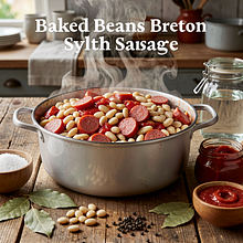 Klasyczna polska fasolka po bretońsku w wersji z kiełbasą — sycące, aromatyczne danie jednogarnkowe znane z domowego, wiejskiego stołu. Bazą są namoczone i długo duszone białe fasole z dodatkiem wędzonej kiełbasy i koncentratu pomidorowego, doprawione liściem laurowym, zielem angielskim i majerankiem. Danie ma kremową konsystencję, wyraźny, lekko wędzony smak dzięki kiełbasie (i opcjonalnie boczkowi), oraz przyjemną kwaskowato-słodką nutę od pomidorów. Podawaj gorące z chlebem razowym lub świeżym, można też serwować z kaszą gryczaną lub ziemniakami. Idealne na chłodniejsze dni, świetnie smakuje odgrzewane następnego dnia — smaki się przegryzają.