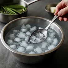 Przygotuj dużą miskę z bardzo zimną wodą i dodatkiem kostek lodu (tzw. kąpiel lodowa). Po 3-4 minutach blanszowania szybko przełóż fasolkę łyżką cedzakową do miski z lodowatą wodą, aby natychmiast zatrzymać proces gotowania. Dzięki temu fasolka zachowa intensywny zielony kolor i jędrną strukturę.