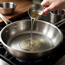Dodaj zmiażdżony czosnek (10 g) i smaż 30 sekund, uważając, by się nie przypalił. Następnie posyp równomiernie 30 g mąki i mieszaj przez 60 sekund, aż mąka lekko się podpraży (pomoże to pozbyć się smaku surowej mąki).