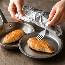 Włóż usmażone filety z powrotem do sosu, przykryj patelnię pokrywką i duś na małym ogniu przez 6-8 minut, aby mięso doszło wewnątrz i przejęło aromaty sosu. Po tym czasie sprawdź temperaturę wewnętrzną (powinna wynosić ok. 74°C) lub przetnij najgrubszy kawałek - mięso powinno być białe i soczyste (bez różowych śladów).