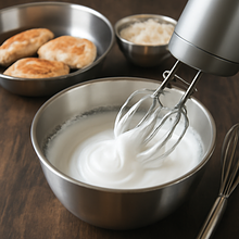 Ubij białka na sztywno: używając miksera ręcznego lub stojącego na średnio-wysokich obrotach, ubij białka przez około 3–5 minut aż powstaną sztywne, błyszczące piki — po uniesieniu trzepaczki białka będą stać w kształcie ostrego wierzchołka. Możesz dodać 1 łyżeczkę (5 g) soli pod koniec ubijania, co poprawi strukturę piany.