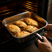 Wstaw naczynie do nagrzanego piekarnika i zapiekaj 15–18 minut lub do momentu, gdy wierzch chmurki zyska jasnozłoty kolor, a termometr wsunięty w najgrubszą część fileta wskaże 74–75°C. Jeśli chmurka zbrązowieje zbyt szybko, przykryj delikatnie folią aluminiową.
