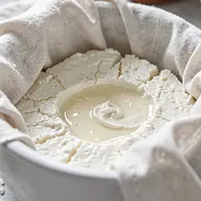 Przygotowanie twarogu: umieść twaróg w dużej misce. Jeśli twaróg jest bardzo wilgotny, przełóż go na gazę lub drobne sitko i odciśnij nadmiar serwatki przez 10-15 minut. Odciśnięty twaróg powinien być wilgotny, ale nie płynny.