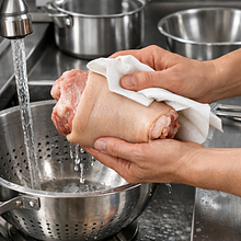 Użyj dużego garnka o pojemności min. 5 litrów. Suszenie papierowym ręcznikiem poprawia przyrumienianie. Typowy błąd: zbyt mało soli - mięso będzie mdłe; jednak nie przesadzaj z soleniem kapusty później.