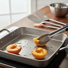 Zacznij od przygotowania brzoskwiń. Umyj je dokładnie pod bieżącą, zimną wodą i osusz delikatnie ręcznikiem papierowym. Ostrym nożem przetnij każdą brzoskwinię na pół, prowadząc nacięcie wzdłuż naturalnej bruzdy owocu, aż poczujesz pestkę. Następnie chwyć obie połówki w dłonie i delikatnie przekręć w przeciwnych kierunkach – jedna połówka powinna łatwo oddzielić się od pestki. Z drugiej połówki usuń pestkę za pomocą małej łyżeczki lub czubka noża. Każdą połówkę posmaruj cienką warstwą oliwy z oliwek (użyj około 1 łyżeczki) – zapobiegnie to przywieraniu do patelni.
