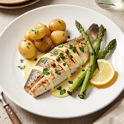 Delikatne filety z flądry z lekkim, aksamitnym sosem cytrynowym to wiosenne, regionalne wydanie rybnego dania głównego. Przepis łączy prostotę polskiej kuchni rybnej z drobnym twistem: cytrynowo-maślany sos ze śmietaną i natką pietruszki oraz opcjonalnymi świeżymi szparagami jako sezonowy dodatek. Danie jest lekkie, aromatyczne (kwaśno-maślane) i efektownie prezentuje się na talerzu — złocista skórka ryby, jasny, kremowy sos i zielone akcenty. Podawać z młodymi ziemniakami lub kaszą pęczak, białym winem lub lekkim piwnym lagerem. Przepis przeprowadza krok po kroku, idealny dla osoby robiącej flądrę pierwszy raz.