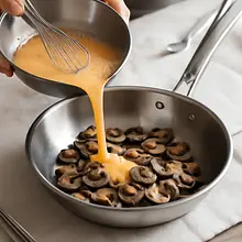 Rozpuść masło na patelni na średnim ogniu. Dodaj pieczarki i smaż, aż zmiękną i lekko się zrumienią.