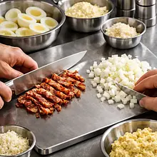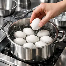 Przygotuj garnuszek o średnicy dopasowanej do 8 jajek (najlepiej 18–20 cm). Ułóż jajka w jednej warstwie na dnie garnka. Zalej zimną wodą tak, aby woda sięgała około 2 cm ponad jajka. Dodaj 1 szczyptę soli (1 g) do wody — ułatwi to obieranie skorupek. Postaw garnek na dużym ogniu i doprowadź do wrzenia, przykryj pokrywką i od momentu zagotowania zmniejsz ogień do średniego i gotuj przez 9 minut, aby uzyskać jajka na twardo z kremowym żółtkiem. Po upływie 9 minut natychmiast przelej jajka zimną wodą i włóż do miski z lodowatą wodą (ewentualnie dodaj kilka kostek lodu) na co najmniej 5 minut — to zatrzyma proces gotowania i ułatwi obieranie.