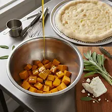 Zacznij od przygotowania rozczynu drożdżowego. W małym garnuszku lub w mikrofalówce podgrzej 300 ml wody do temperatury ok. 35°C. Woda powinna być przyjemnie ciepła w dotyku, jak woda do kąpieli dla dziecka, ale nie gorąca. Do dużej miski lub kubka wkrusz 15g świeżych drożdży. Dodaj łyżeczkę (5g) cukru i zalej wszystko ciepłą wodą. Delikatnie wymieszaj widelcem, tylko do rozpuszczenia się drożdży. Odstaw miseczkę w ciepłe miejsce na około 10-15 minut. Po tym czasie na powierzchni powinna pojawić się gęsta, beżowa piana. To znak, że drożdże są aktywne i gotowe do pracy.