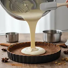W małym rondelku rozpuść 100g masła na małym ogniu. Do miski z pokruszonymi herbatnikami dodaj 30g brązowego cukru, 4g (2 łyżeczki) cynamonu i 2g (1 łyżeczkę) imbiru. Wymieszaj suche składniki. Następnie wlej rozpuszczone masło i dokładnie wymieszaj łyżką, aż wszystkie okruszki będą wilgotne i całość będzie przypominać mokry piasek.