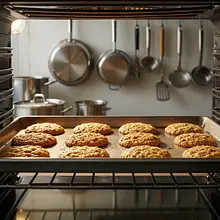 Piecz ciastka przez 12-15 minut w temperaturze 180°C. Powinny być złociste na brzegach, ale wciąż miękkie w środku. Po wyjęciu z piekarnika zostaw je na blasze na 5 minut, aby lekko stwardniały, a następnie przełóż je ostrożnie za pomocą szerokiej łopatki na kratkę do całkowitego wystudzenia. Muszą być kompletnie zimne przed nałożeniem lodów.