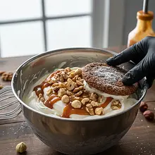 Oto przepis na deser, który przeniesie Cię w świat dziecięcej radości, ale w zdecydowanie bardziej wyrafinowanym wydaniu. Karmelowo-Orzechowe Lodowe Kanapki to połączenie dwóch idealnie chrupiących, a zarazem ciągnących się ciasteczek owsianych z nutą cynamonu, przełożonych aksamitnymi, domowymi lodami karmelowymi bez użycia maszynki. Lody, wzbogacone o słodko-słony sos karmelowy i chrupiące kawałki orzechów pekan, tworzą idealny kontrast dla korzennego smaku ciastek. To deser, który zachwyca nie tylko smakiem, ale i teksturą – od miękkości ciastek, przez kremowość lodów, po chrupkość orzechów. Idealne na letnie popołudnie, przyjęcie dla dzieci lub jako wyjątkowa nagroda po ciężkim dniu. Przygotowanie ich w domu daje pełną kontrolę nad jakością składników i pozwala stworzyć deser znacznie smaczniejszy niż sklepowe odpowiedniki.