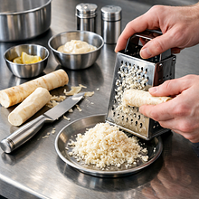 Użyj rękawiczek, jeśli twoja skóra jest wrażliwa — świeży chrzan może podrażniać dłonie. Starty chrzan szybko traci aromat; przygotuj mus tuż przed podaniem lub maksymalnie 2–3 godziny wcześniej i przechowuj w lodówce.