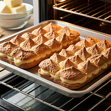 Wstaw blachy do rozgrzanego piekarnika i piecz 25–30 minut w 200°C (góra-dół). Przez pierwsze 20 minut nie otwieraj piekarnika — ciasto powinno równomiernie wyrosnąć. Po upieczeniu warstwy będą głęboko złote i kruche z zewnątrz. Wyjmij i zostaw do całkowitego wystudzenia na kratce — nie układaj warstw jedna na drugiej, by para nie zmiękczyła spodu.