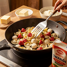 Użyj szerokiego garnka; gotuj makaron bez przykrycia. Sprawdź makaron 1 minutę przed czasem – powinien być jędrny, nie rozgotowany.