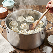 Użyj dużego garnka z pokrywką, aby woda wrzała równomiernie. Czasami kluski wypływają nierównomiernie — liczymy 2–3 minuty od momentu, gdy większość wypłynie. Jeśli gotujesz większą partię, podziel na 2-3 partie.