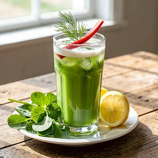 Orzeźwiający, wiosenny koktajl na bazie kefiru z dodatkiem szczawiu i świeżego koperku. To tradycyjna nuta polskiej kuchni w nowoczesnej formie: szczaw wnosi przyjemną kwasowość i zielony kolor, kefir daje lekką kremowość, a koperek dodaje aromatu typowego dla dań wiosennych. Koktajl świetnie sprawdzi się na śniadanie, lekki lunch lub jako chłodzący napój na tarasie. Można podać go z kromką wiejskiego chleba lub jako orzeźwiający dodatek do wiosennych sałatek z rzodkiewką i szparagami.