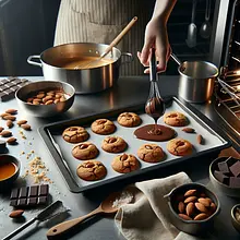 Ułóż ciasteczka na blaszce wyłożonej papierem do pieczenia w odstępach 2-3 cm. Piecz w rozgrzanym piekarniku 10-12 minut, aż brzegi delikatnie się zarumienią (ciasto nadal będzie miękkie w środku — nie przesusz). Po wyjęciu z piekarnika pozostaw na blasze 5 minut, następnie przenieś na kratkę do całkowitego wystudzenia.