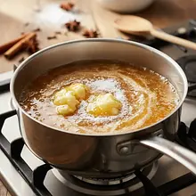 Najlepiej użyć rondelka z nieprzywierającą powłoką, co ułatwi mieszanie. Mieszaj powoli, aby cukier się nie przypalił. Jeśli masa będzie zbyt gorąca, może zaparzyć mąkę i sprawić, że ciasto będzie twarde.